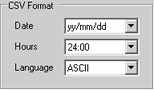 In the [CSV Format Settings] [Date], [Time], [Language] fields, set up the CSV display format.