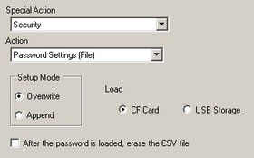 Create a special switch for reflecting the password setting data in CSV format saved in external storage on the display unit.