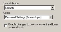 From [Action], select [Password Settings (Screen Input)] to enable [Enable changes to users at current and lower security levels].