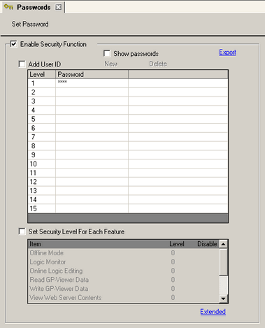 Password setting screen will open. Select the [Enable Security Function] check box, and in [Level 1] enter the password.