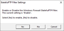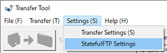You can enable or disable the Windows Firewall StatefulFTP Filter from the [StatefulFTP Settings] in the [Settings] menu of the Transfer Tool.