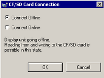 While the CF/SD Card is connected, the display unit changes to Transferring mode and communication with the device/PLC is suspended.