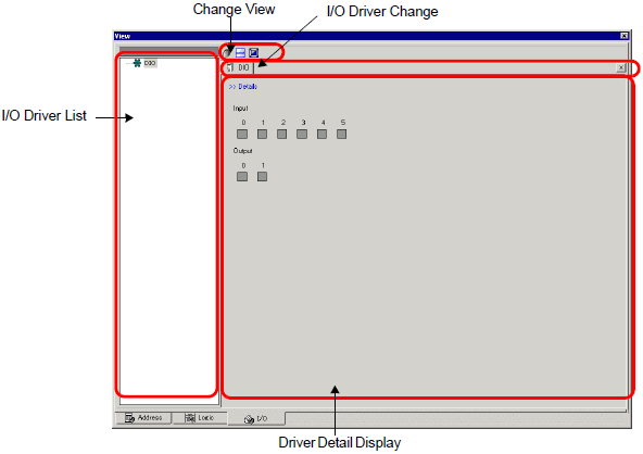 Displays the list of the I/O Driver registered in the current edited project file. Select the I/O Driver to display in the Driver Detail Display Area.