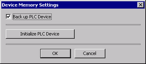When you select this, the [Device Memory Settings] dialog appear as follows. You can backup or initialize the data of the virtual device/PLC address. Click