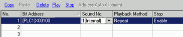 If you connect the bit address for sound output to the bit address for an alarm occurrence, you can provide an announcement of error occurrences with sound.