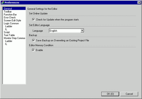 From the [View (V)] menu, select [Preferences (O)]. The [Preferences] dialog box appears. Select the [Save Backup on Overwriting an Existing Project File] check box.