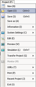 From the [Project (F)] menu select [Open (O)] or click the Open icon