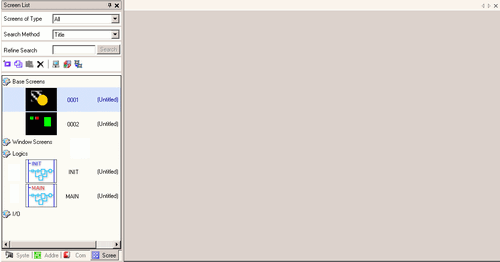 From the [Screen List] window, select the logic screen you want to modify. The screen appears in the editing area.