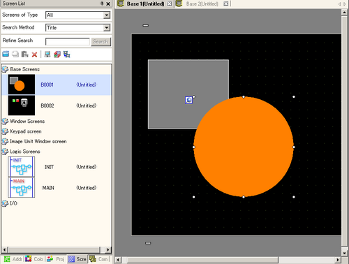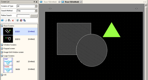 From the [Screen List] window, select the Base Screen you want to modify. The screen appears in the editing area.