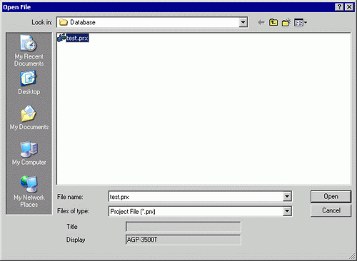 In the [Open File] dialog box, specify the project file (*.prx, *.prxe), then click [Open].