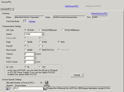 The [Communication Settings] details differ depending on the device/PLC series. See the "GP-Pro EX PLC/Device Connection Manual" for your device/PLC.