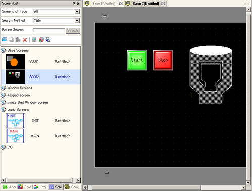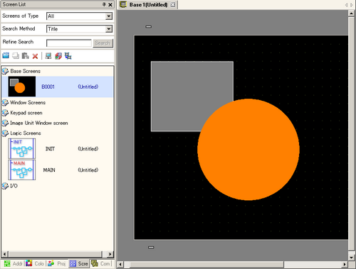 To create a screen without configuring communication settings for the device/PLC series, click [New Screen]. The screen editor will display [Base 1].
