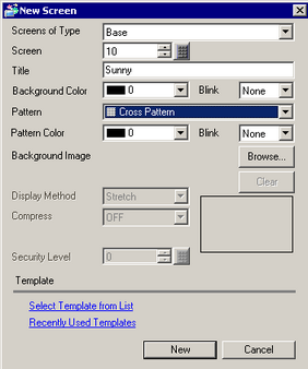 . The [New Screen] dialog box appears. Select the [Screens of Type], specify the screen number and [Title] then click [New].