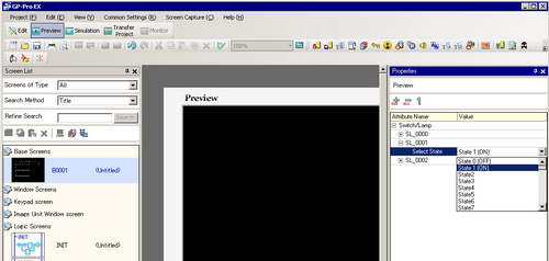 From the [View (V)] menu, point to [Workspace (W)] and select [Properties (P)] to check simple operations, such as switching between showing and hiding Window parts, individually changing the state of Switch Lamps or Picture Displays, and displaying temporary values in a data display unit.