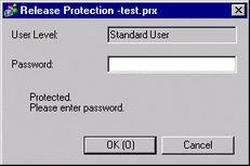 When opening a password-protected project, the [Release Protection] dialog box appears. When you enter a valid password and click [OK], the protection will be released and you can edit the project.