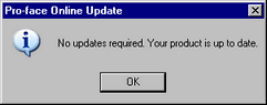 After searching, if there are no program updates, the following dialog box appears. [Finish] button completes the operation. This does not display for the search on launching GP-Pro EX.