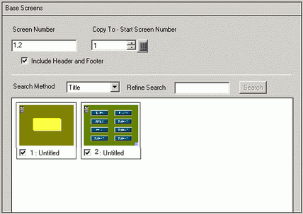 Specifies which base screens to copy. Select the check box associated with each screen preview to add the screen ID to this field.