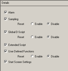 Copy [Alarm], [Sampling], [Global D-Script], [Extended Script], [User Defined Functions], [Text], and [Start Screen] from another project.