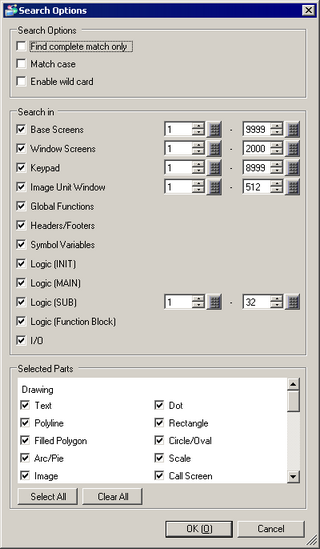 Specifies whether to search Logic (MAIN) screens.
