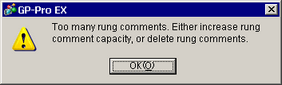 When the number of rung comments exceeds the rung comment capacity (total of initial and expanded amount of the rung comment block), if you set [Expand Logic Program Area] to OFF, the window appears. Delete rung comments.