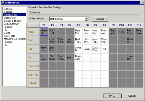 Allocate features by combining F5 to F8 keys with other keys. Double-click the square to be allocated (the function key + the keyboard key) to display the [Function Bar Settings] window.