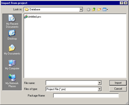 From the [Select Package] list, select [Import from project] to display the [Import from project] dialog box.