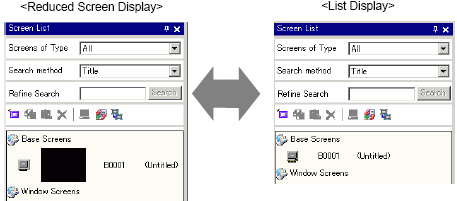 Changes the screen list to show or not show a thumbnail preview of the screen.
