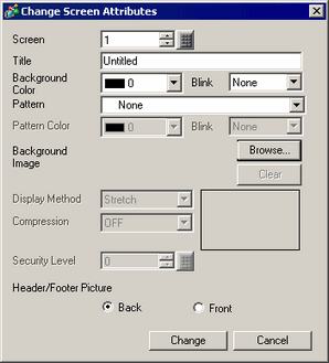 For Base and Window screens you can change multiple screen attributes, other than the [Screen] number and [Title], all at once. Select the screens you want to change from the [Screen List] window by using the [Shift] or [Ctrl] keys and clicking the screen, and then click the [Change Attributes] icon.