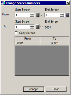 Set the Start Screen Number and End Screen Number for the screens you want to copy or change screen numbers.