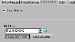 On the [Lamp Feature] tab, select the [Lamp Feature] check box and click [Copy from Switch]. The same address as the one designated on the [Switch Feature] tab will appear in [Bit Address].
