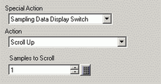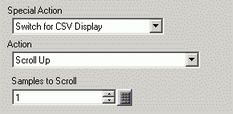 You can set the Special Data Display [CSV Display] switch's action to [Scroll Up], [Scroll Down], [Scroll Left], [Scroll Right], [Print-All], or [Print-Display].