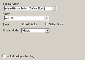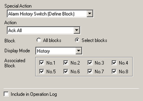 Creates a switch that operates the alarm history (acknowledge and clear etc) by specified block unit.