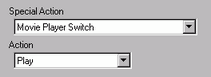 Select the switch function for playing a movie with [Movie Player] from [Play], [Stop], [Pause], [Fast Forward], [Rewind], [Slow Motion], [Forward 1 Frame], [Back 1 Frame], [Change Movie], [Zoom], [Move], or [Video Display].