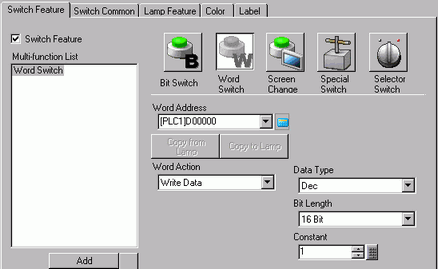 Touch the switch and data is written to the device/PLC address specified in [Word Address].