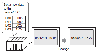 You can change the time on the display unit from a device/PLC.