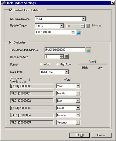 Choose the data format of the stored clock data from [16 bit Dec], [16 Bit BCD], [32 bit Dec] or [32 Bit BCD].