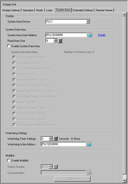 System Data Area availability depends on the device/PLC. Refer to the "GP-Pro EX Device/PLC Manual" for more information.