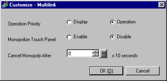 When using Monopolize Touch Panel and no operations are run on the display unit for the time set here, monopolization of operations is canceled and the other display units are unlocked.