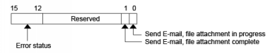 Bit 0 (operation bit) is ON while e-mail transmission or file attachment is in progress. Bit 1 (completion bit) turns ON when the operation is complete.