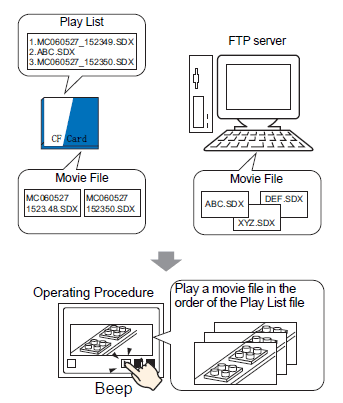 If you know the movie files you want to play, for example, to display a process recorded in movies, first register the movie files you want to play in a playlist. If several movie files are registered in the playlist, the files will be played sequentially in that order.