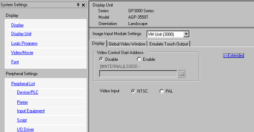 For [Video Control Start Address] select [Disable]. For [Video Input] select [NTSC]. (If the video signal is PAL, select [PAL].)