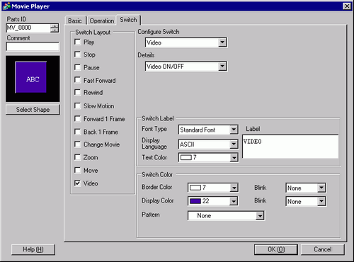 Click the [Switch] tab. [Switch Layout] options, select the [Video] check box. In the [Details] list, select [Video ON/OFF].