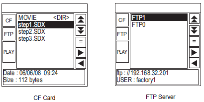 Touch [CF] or [FTP] to select the file location.