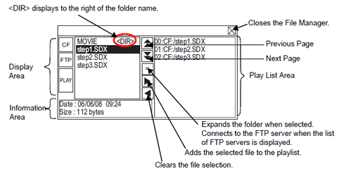The names of the files to be played are displayed in the list. The files are played in the order of this list.