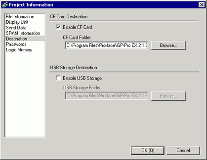 Specify a folder such as a folder on a CF card (but not on FTP server)