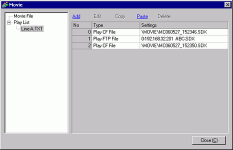 You can specify the created file (TXT) in the movie player's [Play List] by selecting [FTP].