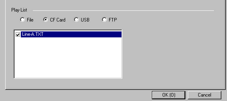 In [Playlist], select [CF] and select the check box next to the file created in step 7. (For example, Line-A.TXT)