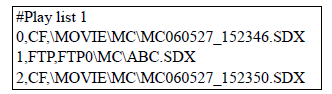 To create a play list on the FTP Server, use a text file (such as Notepad) to create a file in the following format.