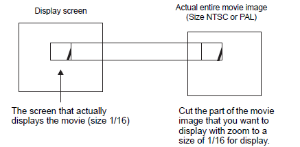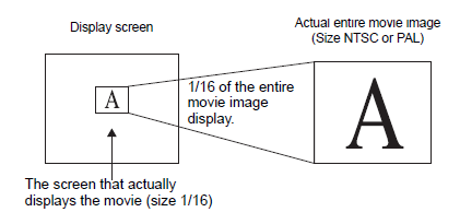 When the display size is [1/16] and the screen size is 1/16 of the movie image