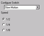 This item is displayed only when [Slow Motion] is selected in [Configure Switch]. Select the speed for slow motion from [1/2], [1/4] or [1/8].